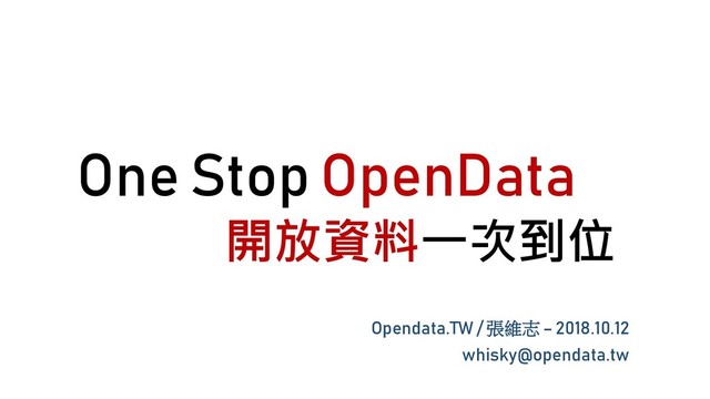 One Stop OpenData 開放資料一次到位 Opendata.TW / 張維志 – 2018.10.12