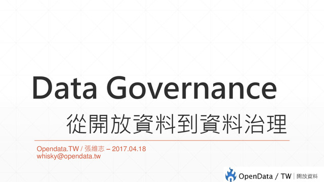 Data Governance 從開放資料到資料治理 Opendata.TW / 張維志 – 2017.04.18