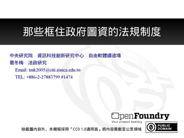 講者 : 葛冬梅 / 中研院資創中心自由軟體鑄造場法政研究