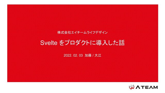 0 株式会社エイチームライフデザイン Svelte をプロダクトに導入した話 2022. 02. 03 加藤 / 大江