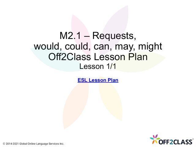 This lesson plan focuses on using the subject I to ask for permission and make requests. As well, it covers using you as the subject to make polite requests. It also outlines formal and informal ways to use these specific modal verbs. This is a great lesson plan for you to use with pre-intermediate students and as a review for intermediate students.