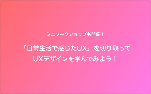 ミニワークショップも開催! 「⽇常⽣活で感じたUX」を切り取って UXデザインを学んでみよう!
