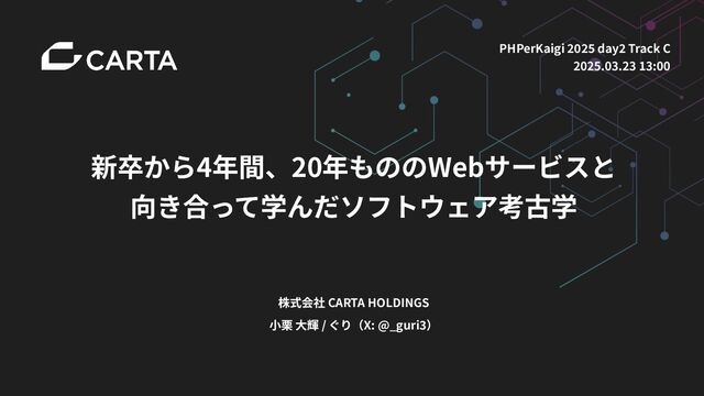 1. 株式会社CARTA HOLDINGS ⼩栗 ⼤輝 ぐり X: @_guri3 略歴 • 2020年新卒⼊社