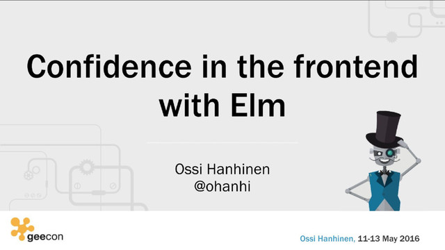 During the last few years, more and more logic in web applications has shifted to the frontend. Technologies like AngularJS, React and Redux have made it reasonable to build large apps that run in the users' browsers. However, being a fully dynamic language with no guarantees, JavaScript can easily get unwieldy as the project scope grows. With static typing and an incredibly helpful compiler, Elm can alleviate these problems.Elm is a fun contemporary language designed for building UI applications. It compiles to standard JavaScript. With this talk, you will gain an understanding of developing in Elm feels like in practice. In particular, you will learn why using the language leads to an unprecedented confidence in frontend development.