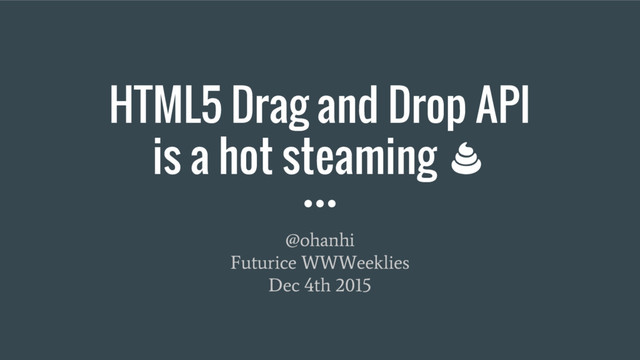 HTML5! The spec defines an event- based mechanism, JavaScript API, and additional markup for declaring that just about any type of element be draggable on a page. I don't think anyone can argue against native browser support for a particular feature. Native browser DnD means faster, more responsive web apps. - Eric Bidelman, September 30th, 2010
