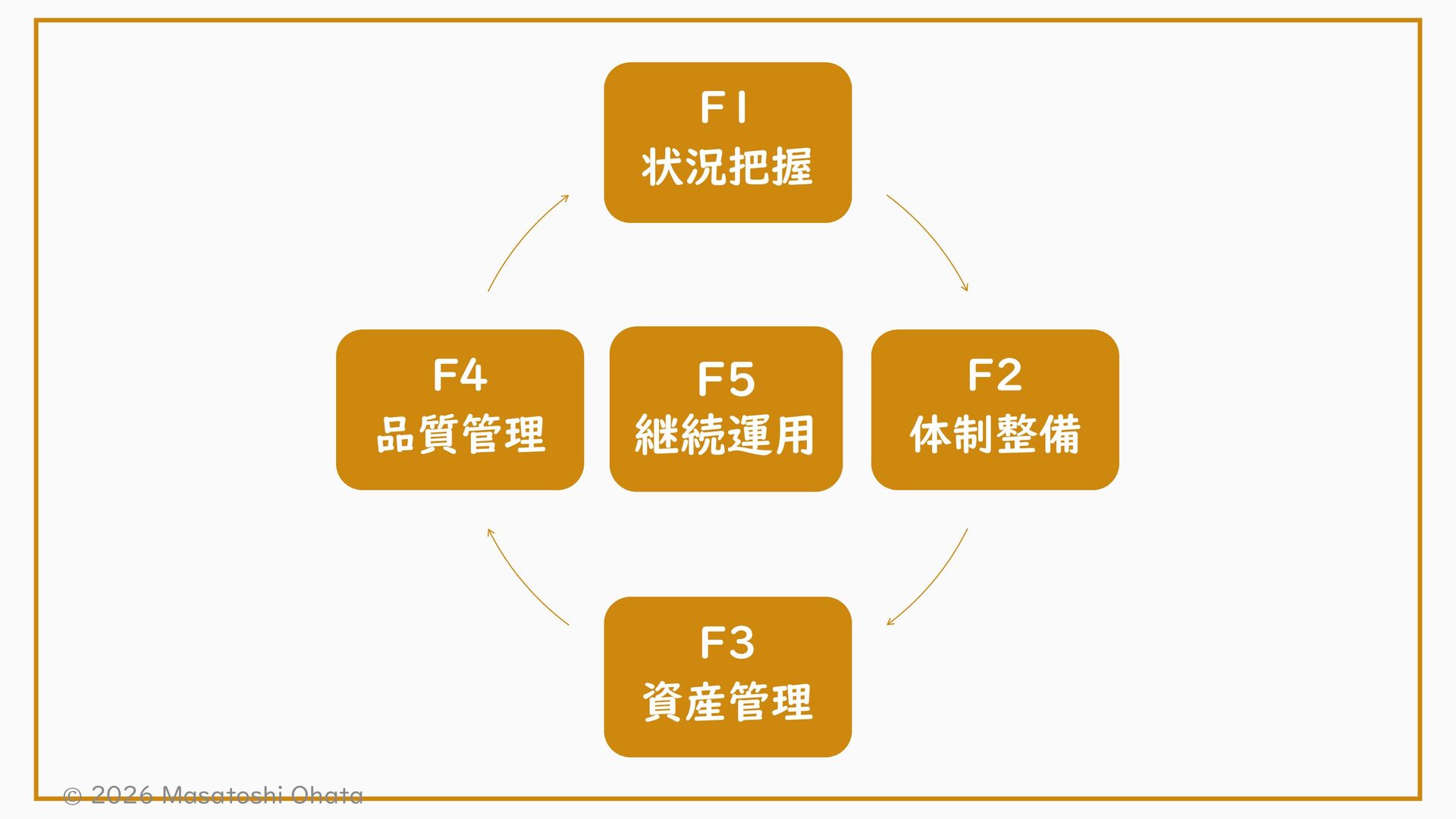 © 2026 Masatoshi Ohata F1 状況把握 F2 体制整備 F3 資産管理