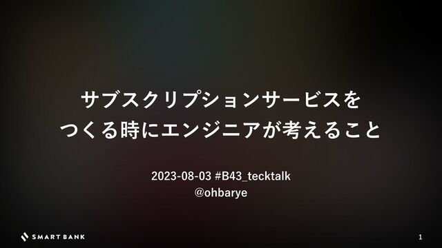 「B/43 Tech Talk 〜 Fintech×サブスクリプションサービス立ち上げの裏側〜」にて @ohbarye が"サブスクリプションサービスをつくる時にエンジニアが考えること"と題して発表した資料です。
