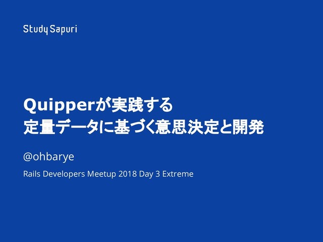 Rails Developer Meetup 2018 Day 3 Extreme (https://techplay.jp/event/679666) にて『Quipperが実践する、定量データに基づく意思決定と開発』というタイトルで発表した資料です。