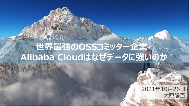 Chunhui Shen Apache HudiのPMC 現在、次世代のDataLake プロダクトサービスを開発中 Shaofeng Li Apache HadoopのPMC フルマネージド型Hadoop、Hiveを意識 しMaxComputeを設計・開発。 現在MaxCompute開発チームに所属 Tao Yang Apache HiveのPMC Hive on Sparkを初めて設計・開発。 現在MaxCompute開発チームに所属 Xuefu Zhang Apache Hive、Apache OCRのPMC MaxComputeのストレージを設計開発。 現在MaxCompute開発チームに所属 Rui Li Apache KylinのPMC eBayやYahoo!Japanも愛用してる 超高速OLAPサービスを10年以上設計・開発。 現在、Hologres開発チームに所属 Billy Liu Hadoop、Hive、Spark、Flink、Presto、HBaseなど Big DataのOSSを開発し、今も貢献し続けてるコアコミッター