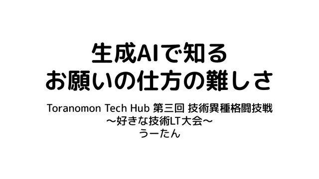 生成AIで知る お願いの仕方の難しさ Toranomon Tech Hub 第三回 技術異種格闘技戦 〜好きな技術LT大会〜 うーたん