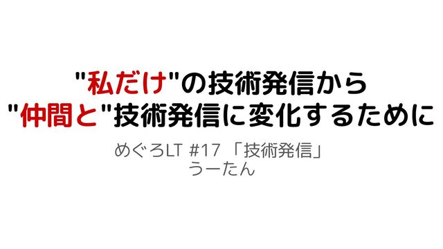 "私だけ"の技術発信から "仲間と"技術発信に変化するために めぐろLT #17 「技術発信」 うーたん