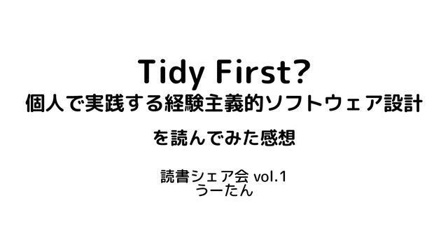 Tidy First? 個人で実践する経験主義的ソフトウェア設計 読書シェア会 vol.1 うーたん を読んでみた感想
