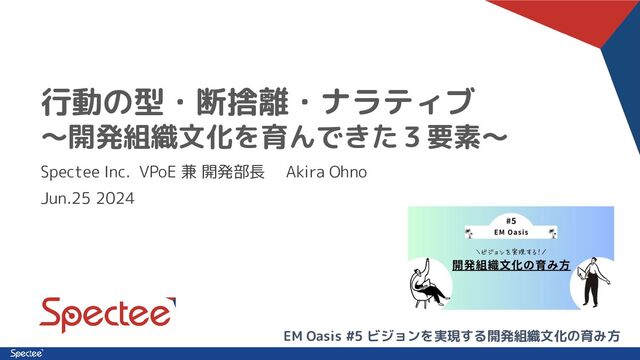 行動の型・断捨離・ナラティブ 〜開発組織文化を育んできた3要素〜 Spectee Inc. VPoE 兼 開発部長 Akira Ohno Jun.25