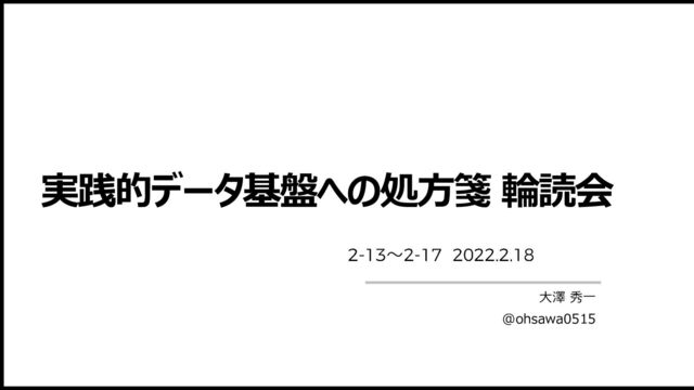 実践的データ基盤への処方箋 輪読会 大澤 秀一 @ohsawa0515 ~