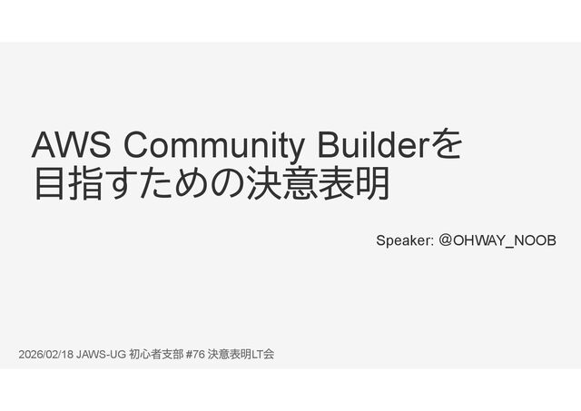 AWS Community Builder Speaker: OHWAY_NOOB 2026/02/18 JAWS-UG #76 LT