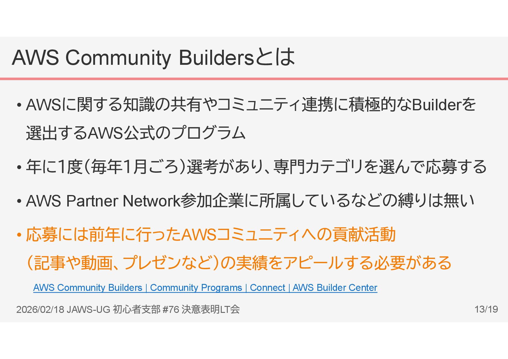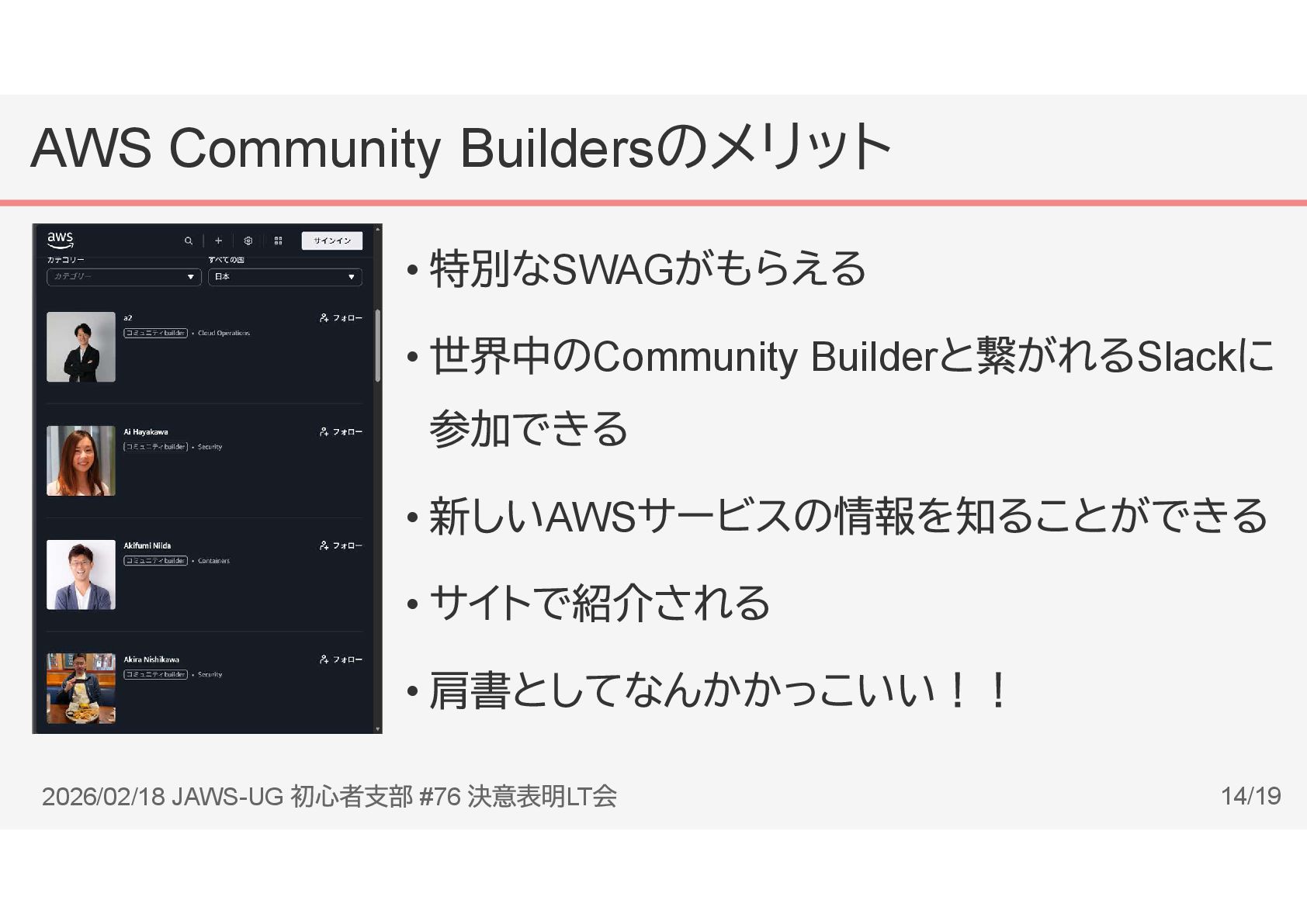 AWS Community Builders 2026/02/18 JAWS-UG #76 LT 12/19