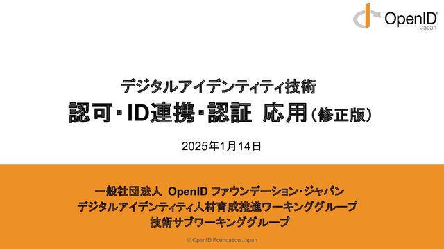 応用(修正版) 一般社団法人 OpenID ファウンデーション・ジャパン デジタルアイデンティティ人材育成推進ワーキンググループ 技術サブワーキンググループ 2025年1月14日