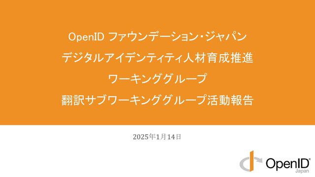 OpenID ファウンデーション・ジャパン デジタルアイデンティティ人材育成推進 ワーキンググループ 翻訳サブワーキンググループ活動報告 2025年1月14日