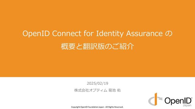 OpenID Connect for Identity Assurance の概要と翻訳版のご紹介 / 20250219-BizDay17-OIDC4IDA-Intro