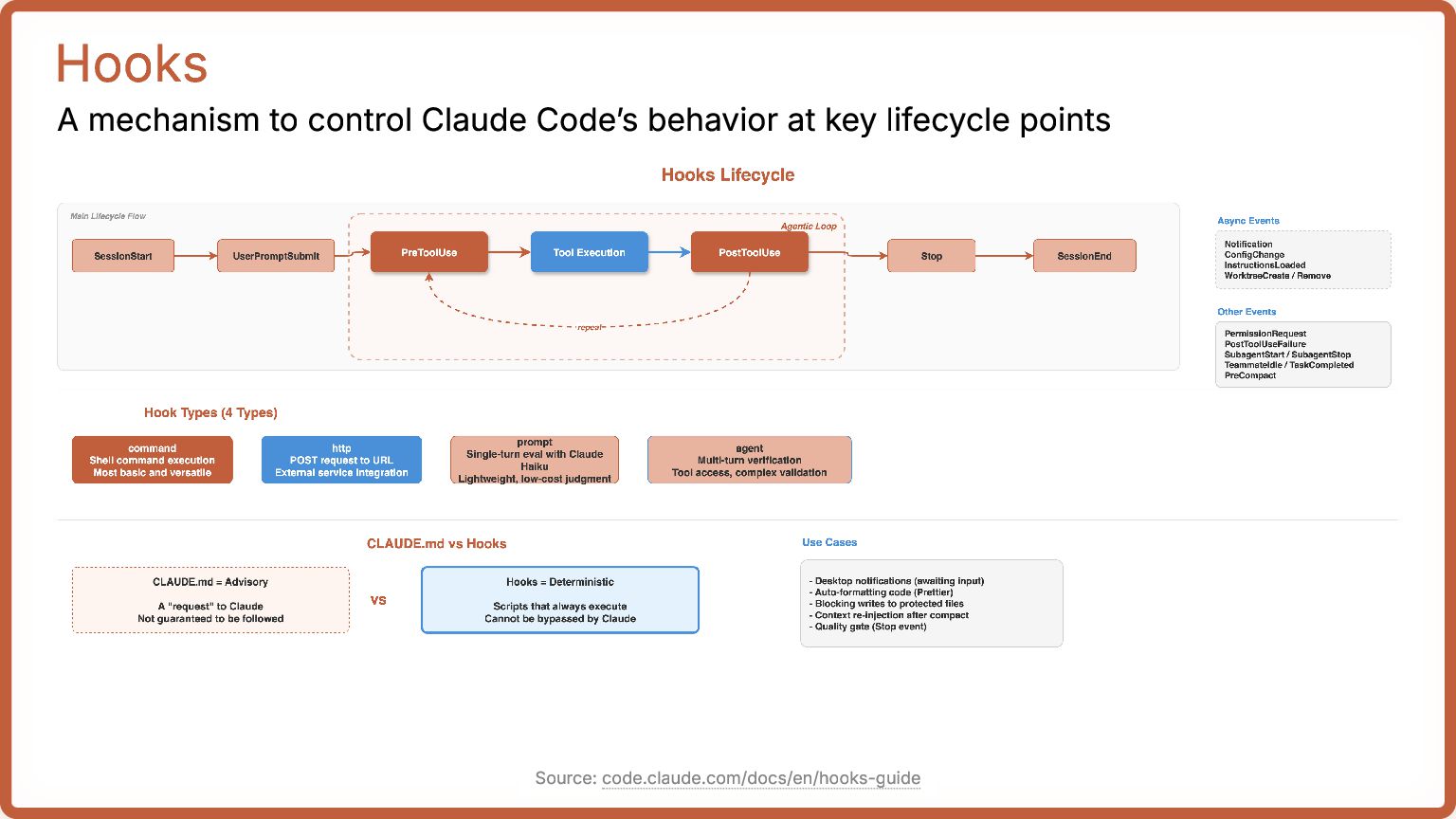 lifecycle points Source: code.claude.com/docs/en/hooks-guide