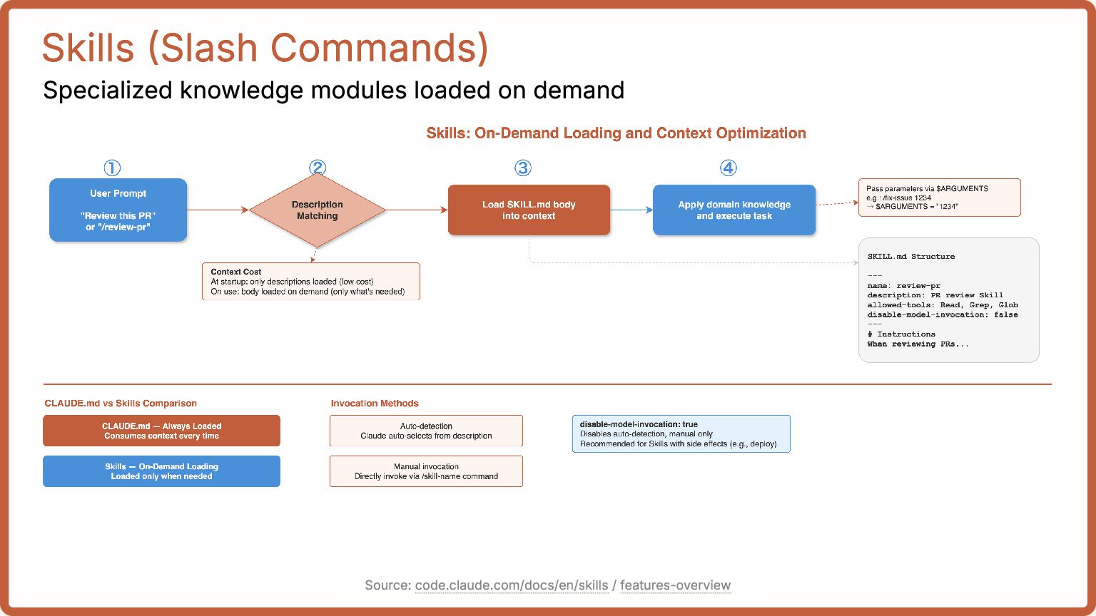 8. Skills (Slash Commands) Specialized knowledge modules loaded on demand Source: