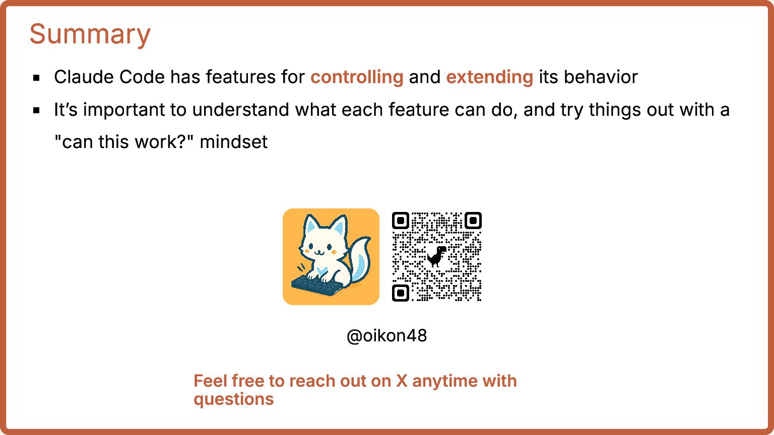 13. Summary Claude Code has features for controlling and extending its