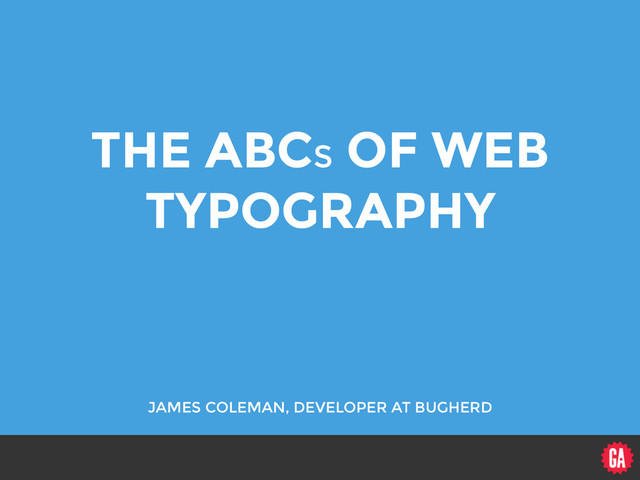 A class presented by General Assembly on the basics of web typography. The end of the classed showed real world usage and implementation of Google Fonts, Font Squirrel and IcoMoon.