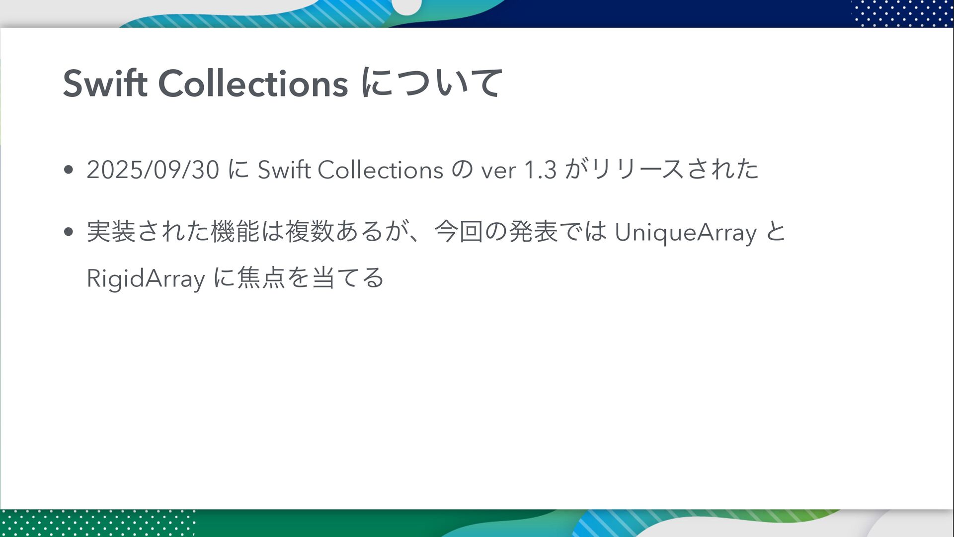 Swift Collections ʹ͍ͭͯ • 2025/09/30 ʹ Swift Collections ͷ ver