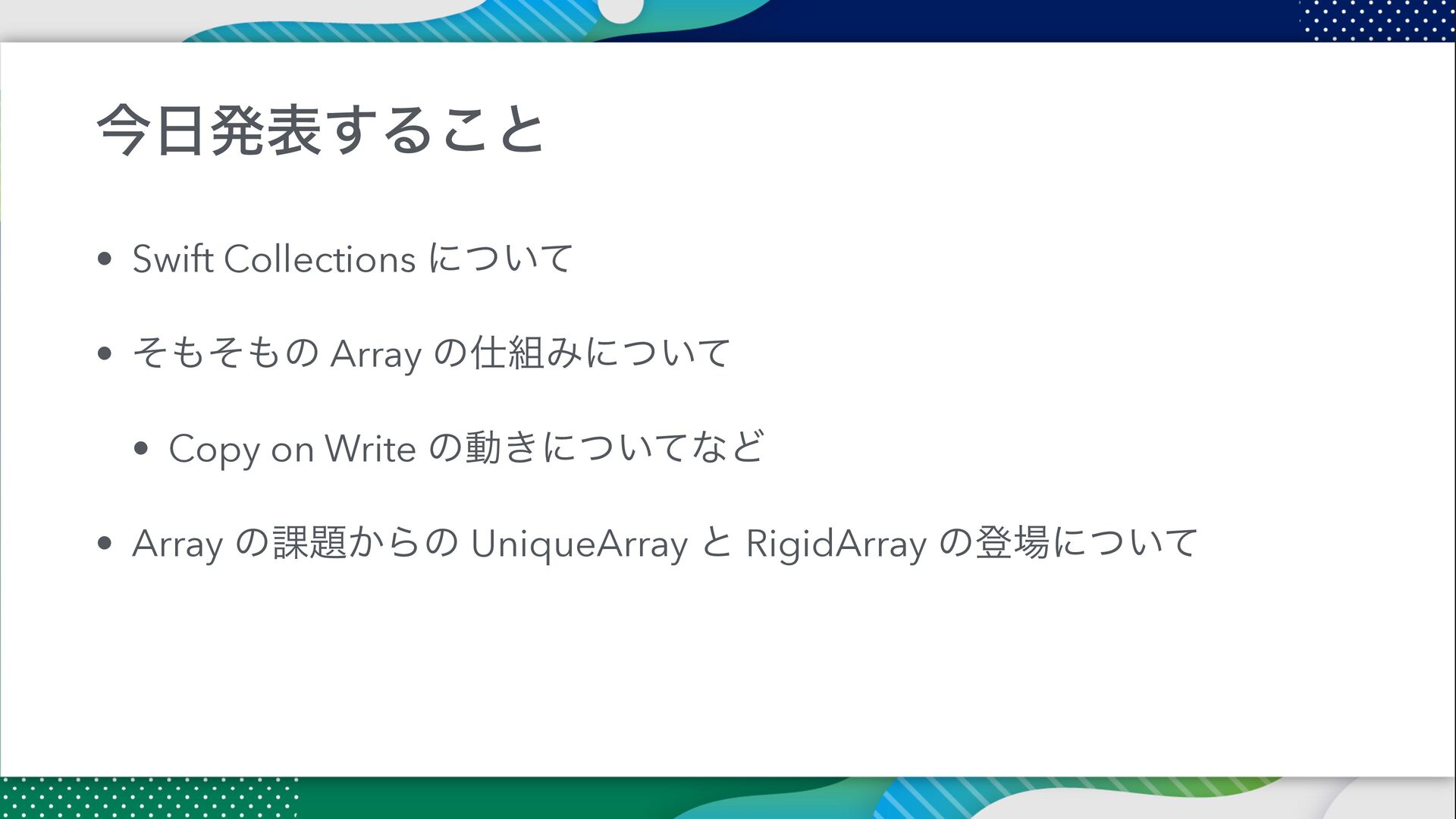 ࠓൃද͢Δ͜ͱ • Swift Collections ʹ͍ͭͯ • ͦͦͷ Array ͷΈʹ͍ͭͯ •