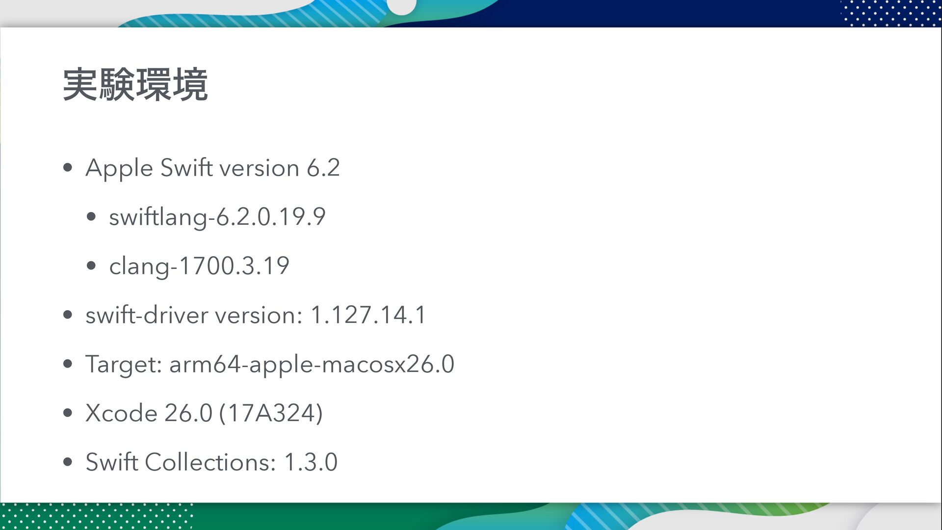 • swift-driver version: 1.127.14.1 • Target: arm64-apple-macosx26.0 • Xcode 26.0 (17A324) • Swift Collections: 1.3.0