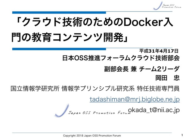 平成30年度日本OSS推進フォーラム活動成果報告会