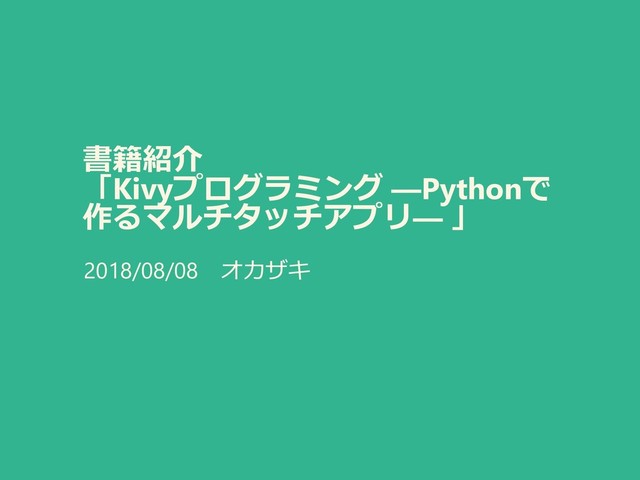 書籍紹介 「Kivyプログラミング ―Pythonで 作るマルチタッチアプリ― 」 2018/08/08 オカザキ