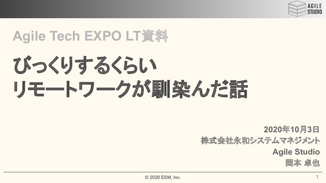 © 2020 ESM, Inc. Agile Tech EXPO LT資料 びっくりするくらい リモートワークが馴染んだ話
