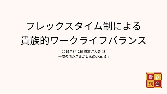 フレックスタイム制による 貴族的ワークライフバランス 2019年3⽉2⽇ 貴族LT⼤会 #3 平成の情シスおかしん@okash1n