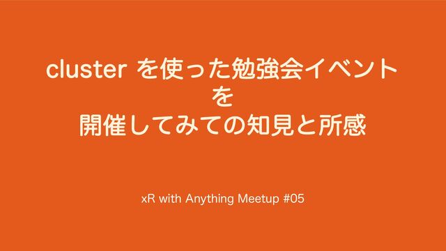 DMVTUFSΛͬͨษڧձΠϕϯτ Λ ։࠵ͯ͠Έͯͷݟͱॴײ Y3XJUI"OZUIJOH.FFUVQ