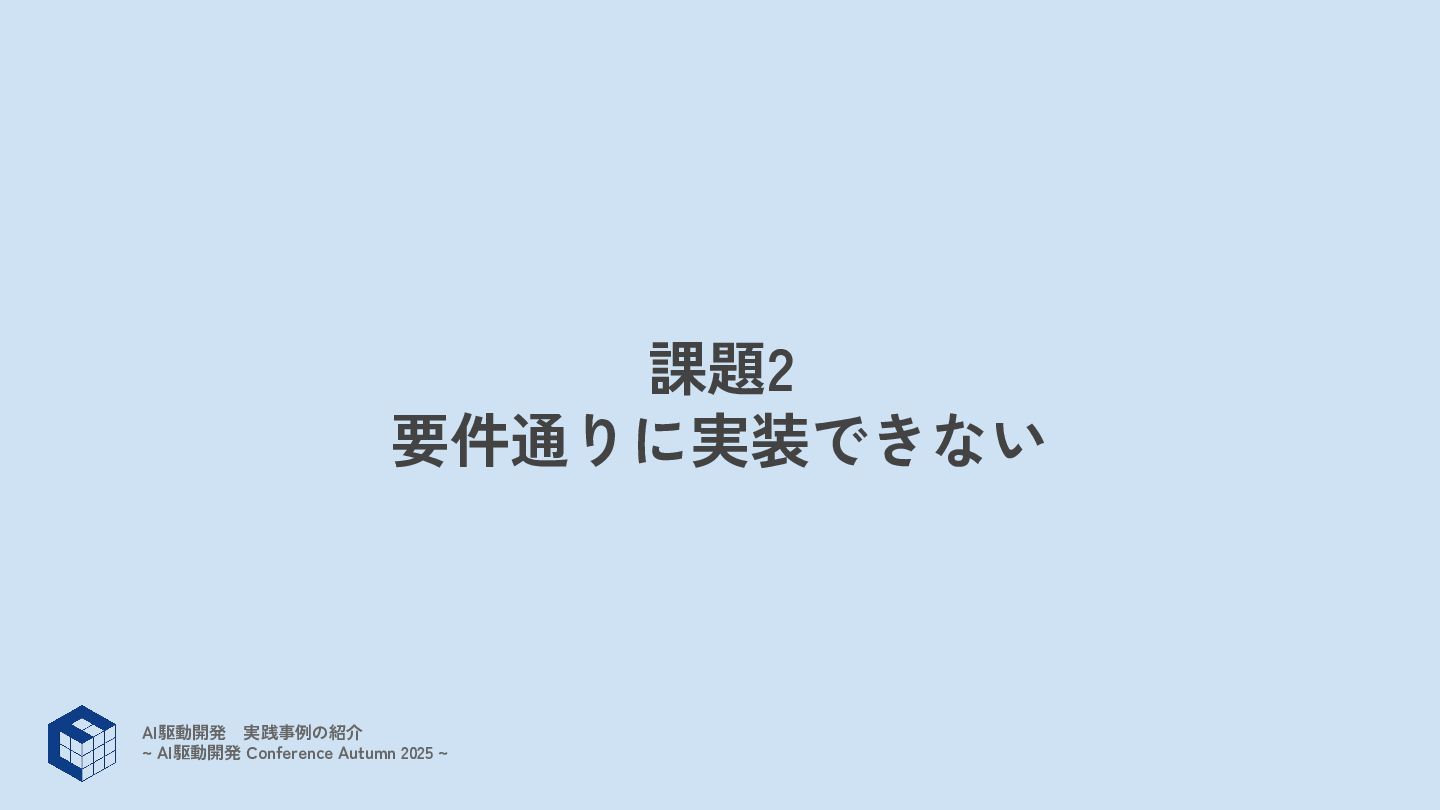 課題2 要件通りに実装できない AI駆動開発 実践事例の紹介 ~ AI駆動開発 Conference Autumn 2025 ~