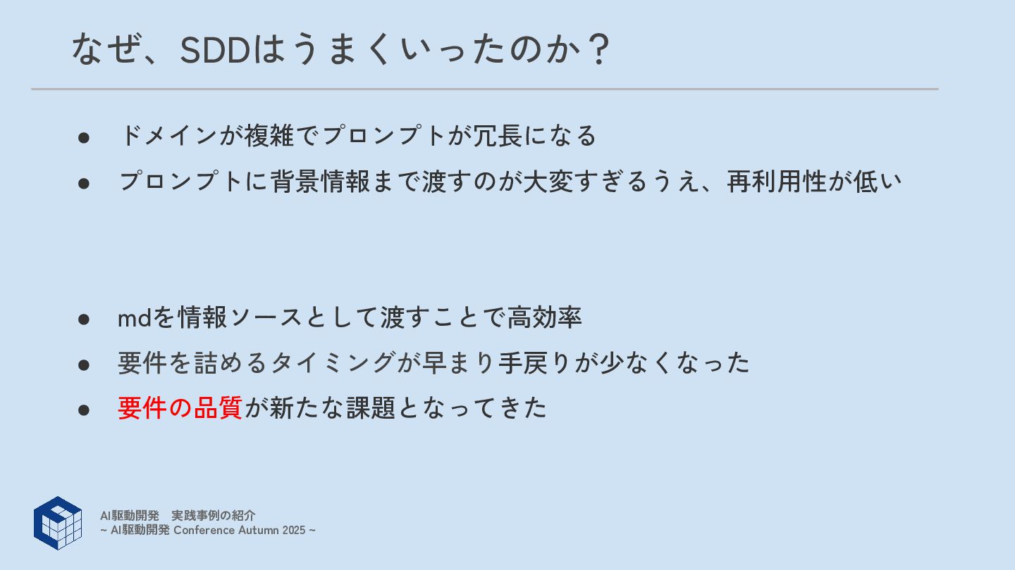 AI駆動開発 実践事例の紹介 ~ AI駆動開発 Conference Autumn 2025 ~ なぜ、SDDはうまくいったのか?