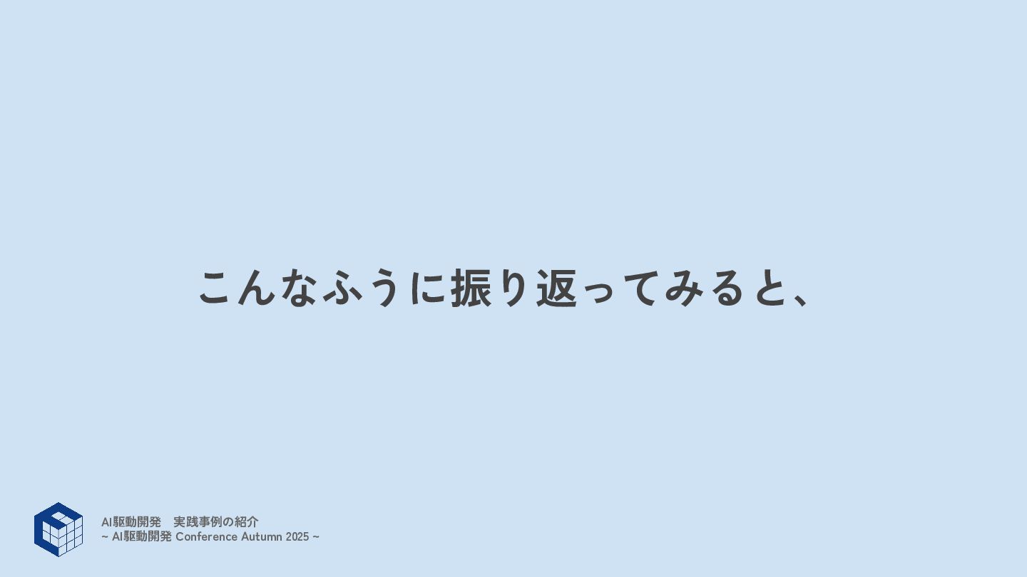 こんなふうに振り返ってみると、 AI駆動開発 実践事例の紹介 ~ AI駆動開発 Conference Autumn 2025 ~