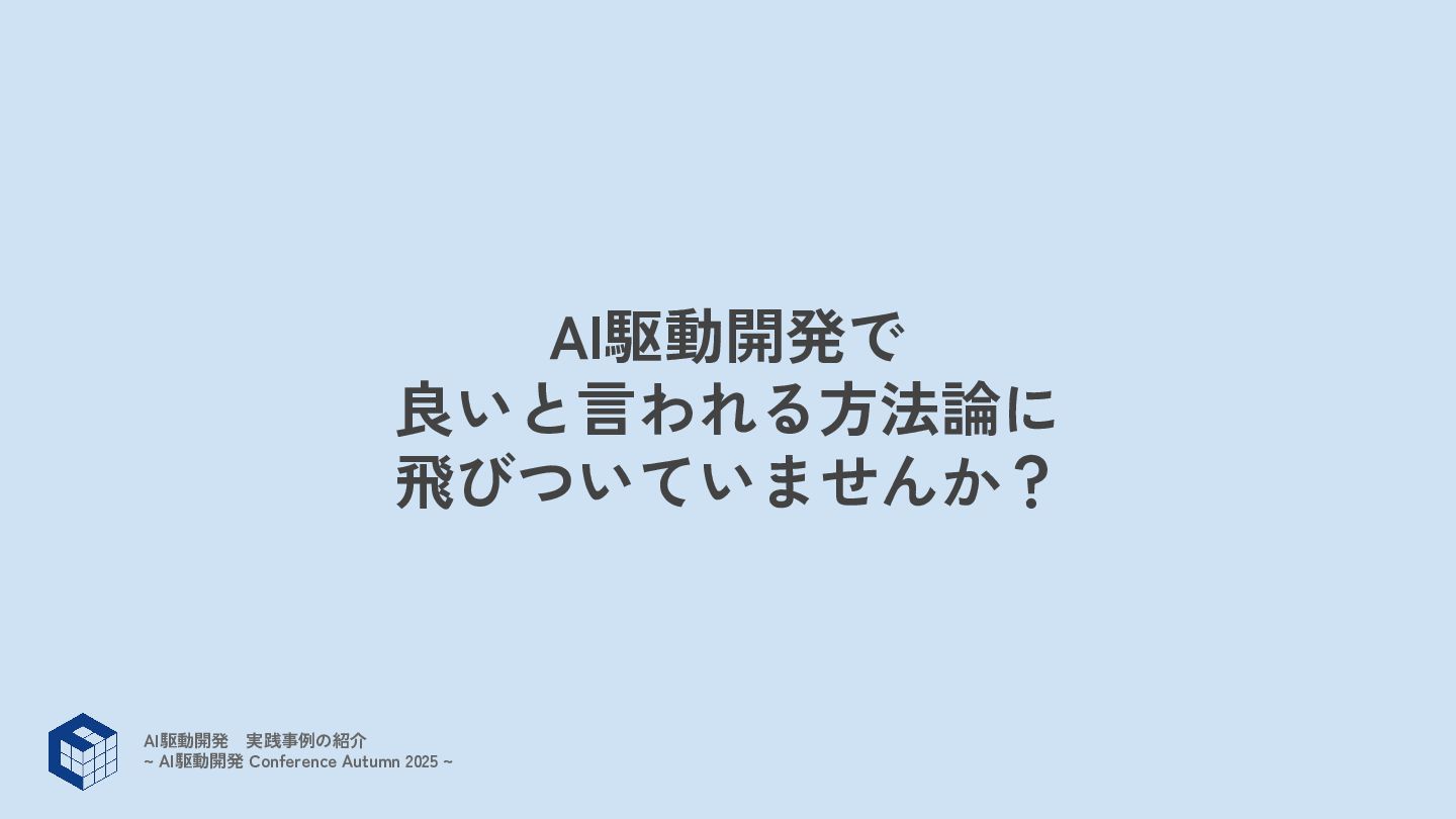 AI駆動開発で 良いと言われる方法論に 飛びついていませんか? AI駆動開発 実践事例の紹介 ~ AI駆動開発 Conference Autumn 2025 ~