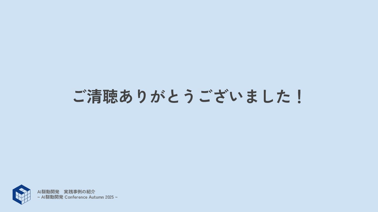 AI駆動開発 実践事例の紹介 ~ AI駆動開発 Conference Autumn 2025 ~ ご清聴ありがとうございました!