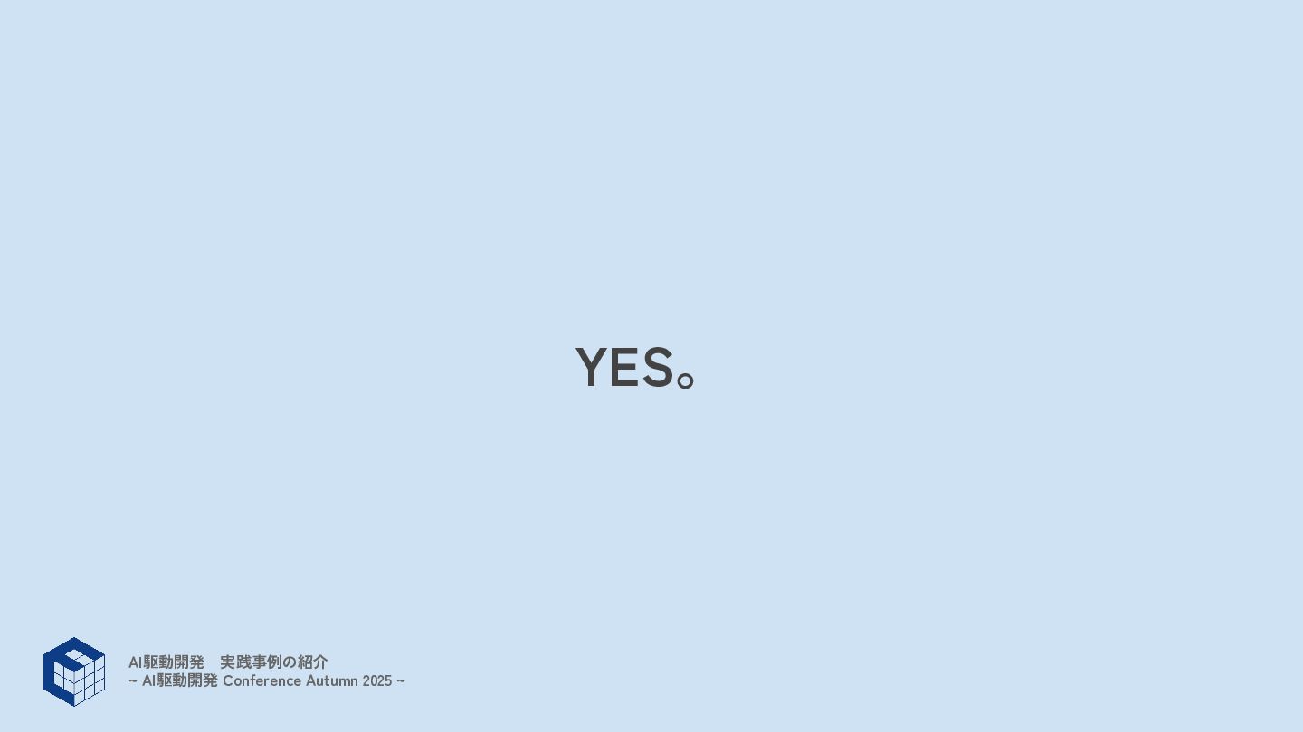YES。 AI駆動開発 実践事例の紹介 ~ AI駆動開発 Conference Autumn 2025 ~