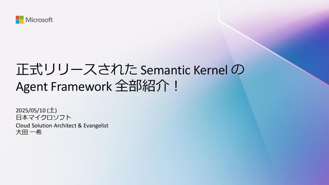 正式リリースされた Semantic Kernel の Agent Framework 全部紹介! 2025/05/10 (土) 日本マイクロソフト