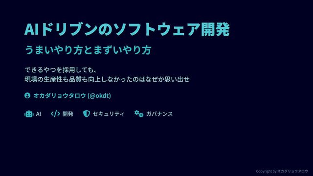 オカダリョウタロウ (@okdt) オカダリョウタロウ (@okdt) AI 開発 セキュリティ ガバナンス Copyright by オカダリョウタロウ