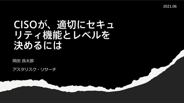 $*40͕ɺదʹηΩϡ ϦςΟػೳͱϨϕϧΛ ܾΊΔʹ 岡⽥ 良太郎 アスタリスク・リサーチ 2021.06