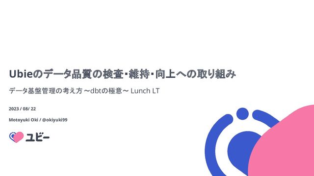 Ubieのデータ品質の検査・維持・向上への取り組み データ基盤管理の考え方 〜dbtの極意〜 Lunch LT 2023 / 08/ 22 Motoyuki