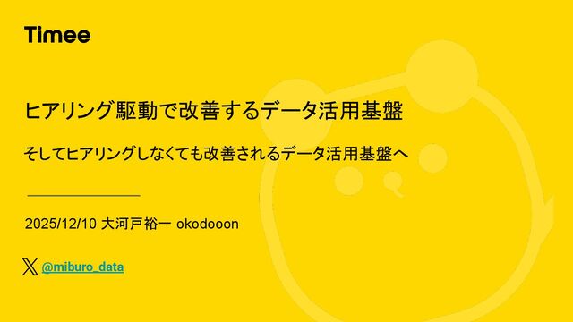 2025/12/10 大河戸裕一 okodooon ヒアリング駆動で改善するデータ活用基盤 @miburo_data そしてヒアリングしなくても改善されるデータ活用基盤へ