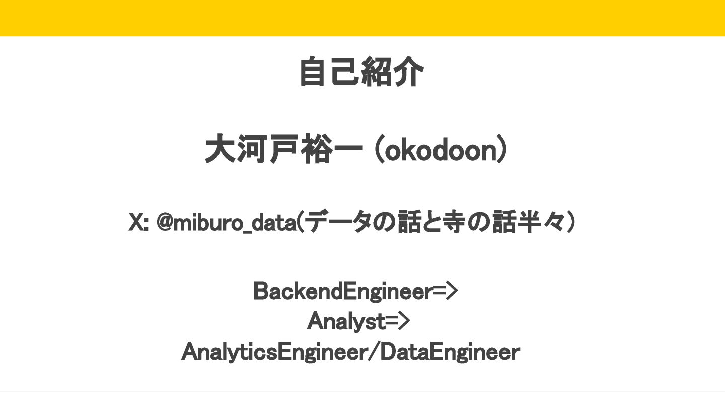 2025/04/09に開催されたtokyo dbt meetup #13の登壇資料です https://www.meetup.com/tokyo-dbt-meetup/events/306580436/