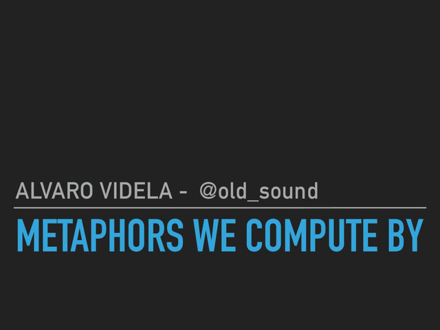 In this talk we are going to review the importance that metaphors have in our code quality, in the algorithms we choose, and the products we ship.