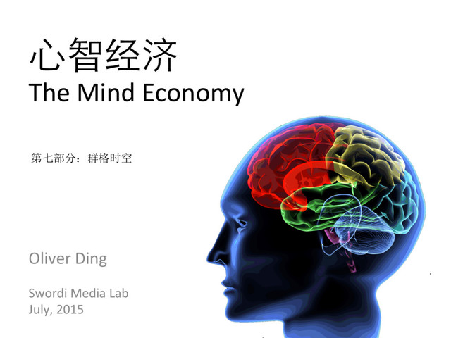 《心智经济》研修议题幻灯片最后一部分《群格时空》。《心智经济》议题旨在探讨混合媒体时代,智者个体的生涯发展之路。针对传统的机构实体,我提出了一个新的概念【心智经济体】,我认为知识经济之后的下一个发展阶段将是心智经济,而心智经济的核心是【组织+产品+品牌+社群+思想】构成的【心智经济体】。我从这个背景出发,探讨智者个体的生涯发展之道,提出【活动容器】的概念,指出正是在活动容器中,智者完成了外在的知识资本、社会资本、货币资本与内在的心智资本的互相转化。