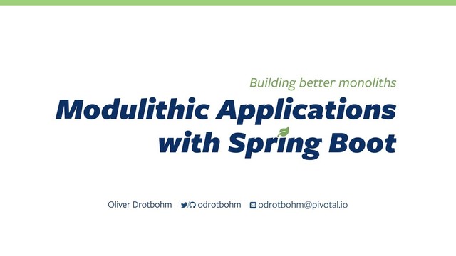 and entities of other modules. 2. Component dependency References to other Spring beans, required to bootstrap the module 3. Events & event listeners Dependency on some other module’s event type. Interesting as they’re great hooks for testing. #☝Avoid!